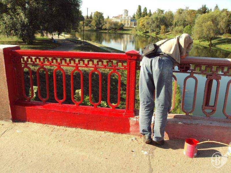 Учора працівники ЖКГ старанно вимахували пензликами. Але віз і нині там – сьогодні Красний міст так ніхто і не дофарбував