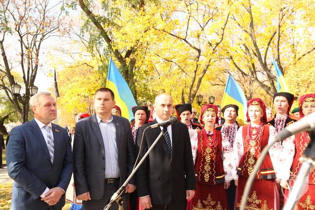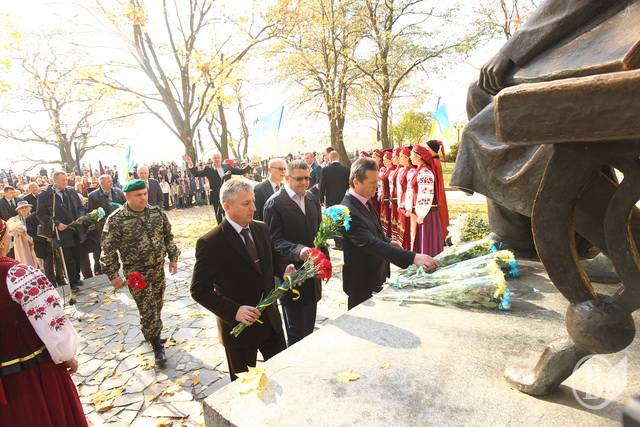 Вітаючи присутніх з Днем захисника України, в.о. голови обласної державної адміністрації Сергій Журман зазначив, що нині країна переживає нелегкі часи – анексія Криму, війна на сході, де кожен день гинуть наші бійці.