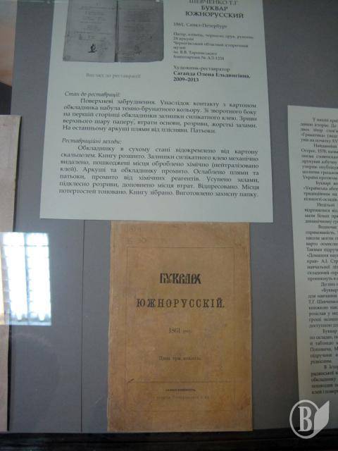 Единственное светское издание из собрания музея на выставке – “Букварь Южнорусский”. Эта небольшая книжица была подготовлена и выдана в январе 1861 года Тарасом Шевченко для начального обучения украинскому языку в воскресных школах.
