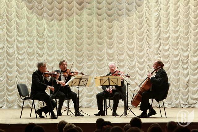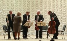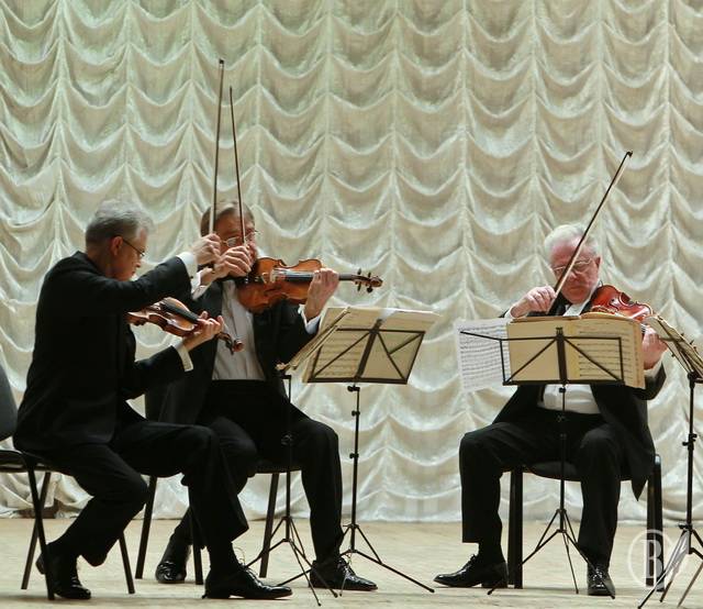 Своєю грою квартет у складі соліста, Лауреата Національної премії України ім.. Шевченка Народного артиста України Анатолія Баженова (скрипка), народного артиста України Івана Кучера (віолончель), заслуженого артиста України Олега Серединського (скрипка), заслуженого артиста України Сергія Романського (альт) полонили слухачів творами Моцарта, Шуберта та Равеля.