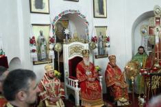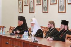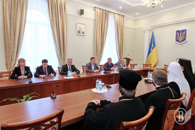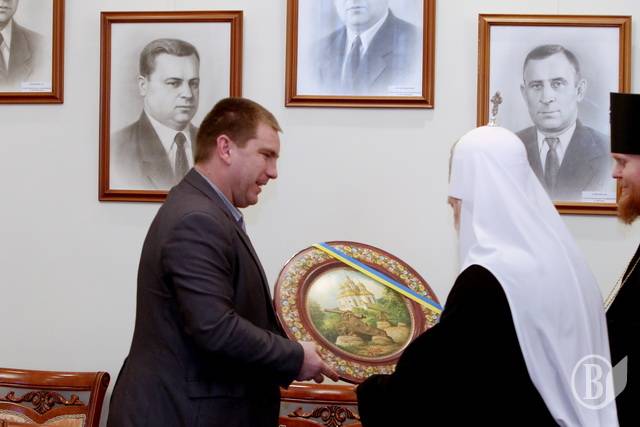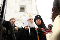 Патриарха поприветствовал архиепископ Черниговский и Нежинский Евстратий. Филарет принял в подарок цветы и иллюстрированную историческую литературу о Чернигове: