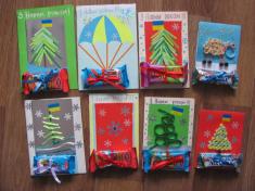 Засуджені юнаки власноруч виготовили листівки з кольорового паперу, оздобили їх яскравими декоративними елементами з натуральних матеріалів. В кожну листівку вклеїли написані від руки новорічні та різдвяні привітання, подякували бійцям за мужність, терпіння та побажали скоріше повертатися додому живими… Вихованці колонії вклали душу в цю творчу роботу, знаючи, що найкращий подарунок той, що зроблений своїми руками.
