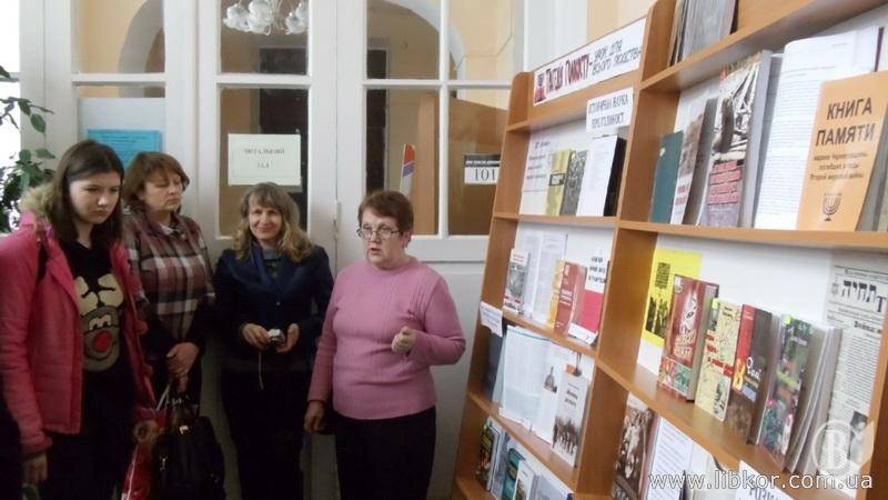 Привертає увагу і викликає зацікавленість краєзнавча література, яка представлена на виставці. Це – добірка документів і матеріалів «Черниговщина в период Великой Отечественной войны (1941-1945 гг.)»; видання Державного архіву Чернігівської області «Німецько-фашистський окупаційний режим на Чернігівщині», що містить в собі 92 документи; «Книга памяти евреев Черниговщины, погибших в годы Второй мировой войны», яку склав і упорядкував Я. Б. Сокольський; матеріали III-го, V-го, VII-го Міжнародних наукових семінарів «Евреи Левобережной Украины. История и культура» , які відбувались в Чернігові; документальні нариси Л. Студьонової та С. Бельмана.