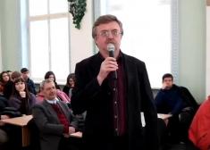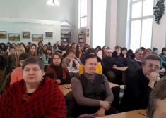 У розмові з аудиторією Василь Миколайович говорив не тільки про свій витвір. Він також розповів про своє ставлення до подій, які зараз відбуваються у країні, відзначивши, що ці історичні події повторюються. Письменник вважає, що не дивлячись на те, що нинішню війну називають «гібридною», це все та ж війна українців «проти москаля». Він зазначив, що і зараз серед синів нашої держави є свої Чорні Ворони – це юні українські воїни, які воюють на передовій «з автоматом в одній руці, та з книжкою – в іншій».