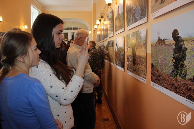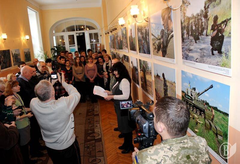 — Фотороботы охватывают разные аспекты деятельности подразделов Украинской армии в зоне АТО, отдельные мгновения из будней воинов, настроения защитников на передовой и выполнение ими боевых заданий. Авторы передали атмосферу, которая царит Донбассе. За каждой фотографией — настоящий герой, который самоотверженно любит и служит своей Родине, отдавая все свои силы и свою жизнь для добра Украинского народа, — рассказал гостям начальник Черниговского регионального медиа-центра Минобороны Украины подполковник Вадим Мыник.