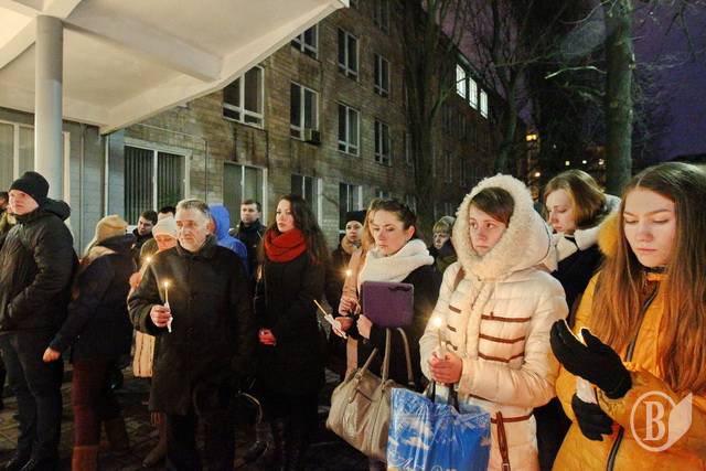 Студенти та викладачі на чолі з ректором університету, професором Миколою Носко вшанували Героїв Небесної Сотні.