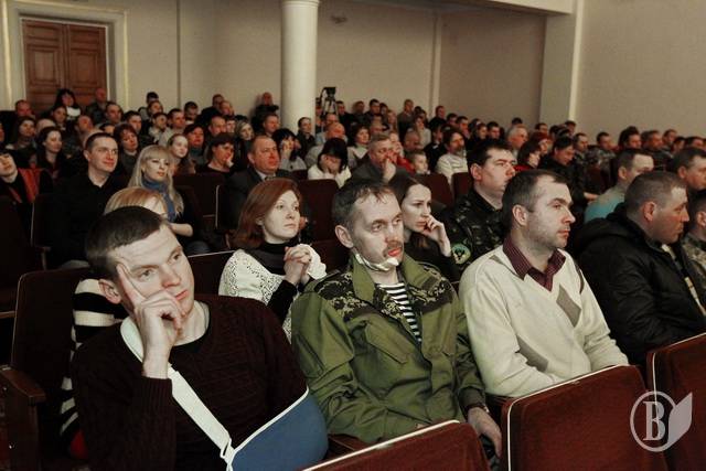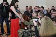 Зрештою, концерт пройшов у доволі теплій і, так би мовити, родинній атмосфері. Бійці жартували: лікуючи рани фізичні не треба забувати і про моральні. А на завершення і військові і концертний батальйон виконали гімн України.