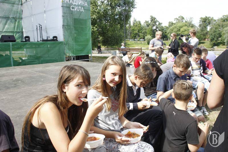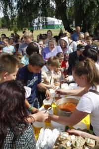 Было множество веселых и забавных конкурсов, танцы и, конечно же, сюрпризы для отличившихся. Кстати, для гостей варили два варианта борща – постный и с мясом. Без фирменной приправы – укропа не обошлось. Горожанам угощение оказалось по вкусу: