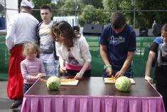 В благодарность за помощь в готовке ведущий подарил своему помощнику майку с надписью – «Вчерашний борщ будет завтра». Пока взрослые занимались нарезкой овощей и собственно кухней, малышню тоже развлекали.