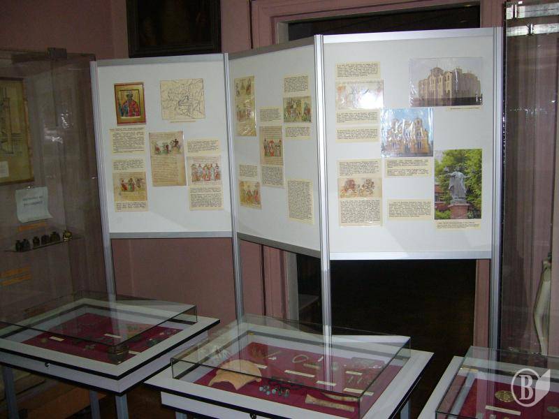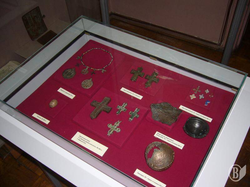 На открытии выставки присутствующие имели возможность увидеть уникальные экспонаты из фондов музея: каменный крестик ХII–ХIII в.. с золотыми обложками концов, серебряную монету англо-саксонского короля Эдельреда (994–1000), серебряную монету “Крещение Руси” номиналом в 10 грн. и орден Святого Владимира ІV степени ХІХ в..