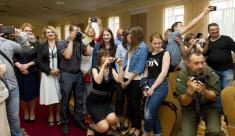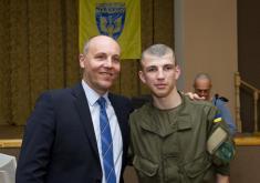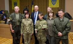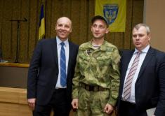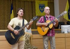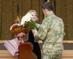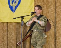 В штабі Нацгвардії презентували диск «Пісні нашої перемоги «На дальніх барикадах» Марія Бурмака, Василь Лютий, Рутенія, Шабля, боєць батальйону Національної гвардії імені генерала Кульчицького Володимир Пастушок (позивний Пісня).