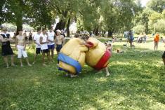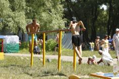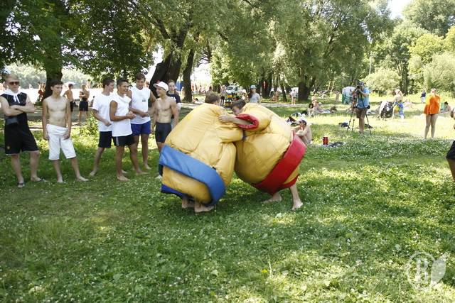 Главным образом, изюминкой мероприятия стала качественная сцена, где звучала динамическая музыка. Горожанам это понравилось, причем настолько, что даже днем в полуденную жару около сцены люди постоянно танцевали и двигались. Кроме веселых диджеев, ведущих, публику развлекали джамперы, ходулисти, а еще – красивые танцовщицы-пиджейки. Рядом со сценой расположился спортивный городок, где проходили соревнования по пляжному волейболу, воркауту, силовым видам спорта. А еще соревновались в перетягивании каната. И не только ради спортивного интереса. В целом, в ближайшее время десять черниговцев точно будут паковать чемоданы – потому что именно столько путевок в Карпаты разыграли за один выходной.