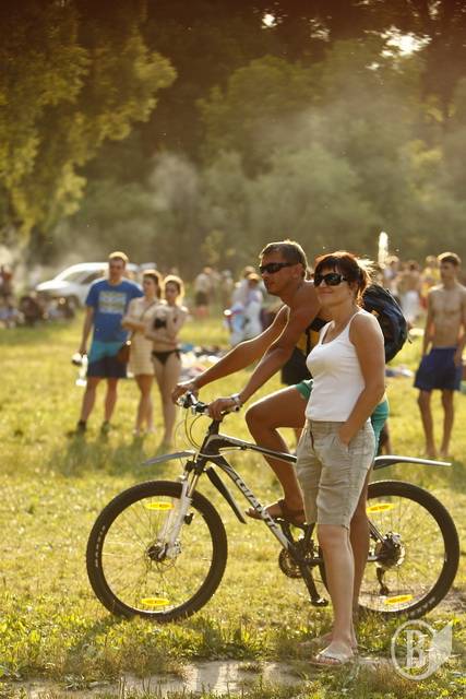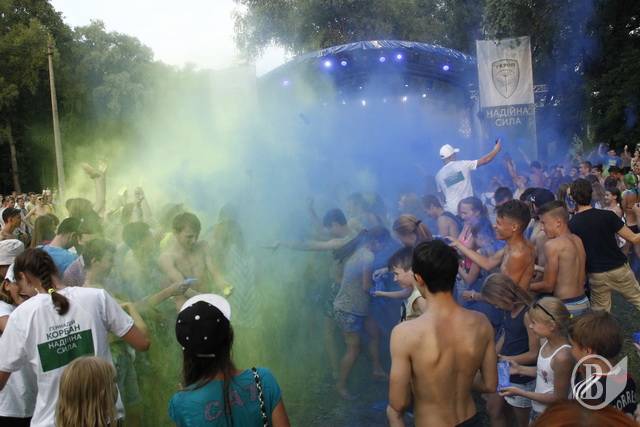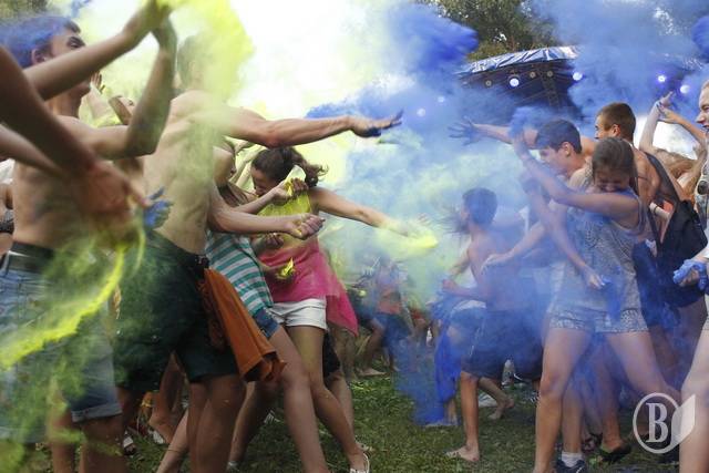 Другая экзотика, которая впервые прошла в Чернигове, – это индийский праздник красок – Холли. Черниговцы внесли одну поправку: в Индии этот праздник отмечают весной, когда у них изобилуют все краски природы, а у нас – летом, потому что именно тогда наша природа на пике своей красоты и плодоношения. Смысл праздника – перекидываться мешочками с сухими порошковыми красками. Около «Золотого берега» это делали две команды – с синими и желтыми цветами. Ведущие отметили: краски абсолютно безвредны – сделанные из картофельного крахмала и легко отстираются.