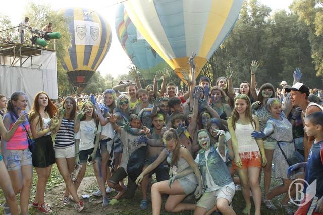 В воздухе сразу зависла тучка сине-желтого цвета. Перемазанные краской, в пятнах, участники феста, тем не менее, выглядели счастливыми и сразу же побежали к реке – отмываться.