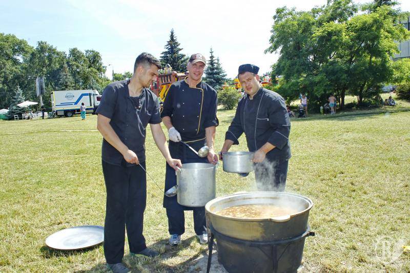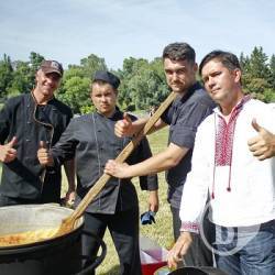 Звісно, суп щедро приправляли спеціями і зеленню кропа. Страви готували не лише у звичних казанках, а й у новому суперсучасному казані, привезеному з Іспанії. Він зручний і тим, що на ньому одразу можна готувати і перші, і другі страви. Окрім смачних наїдків – у благодійному фонді «Укроп» для малечі проводили веселі конкурси з анімацією та невеличкими сюрпризами.