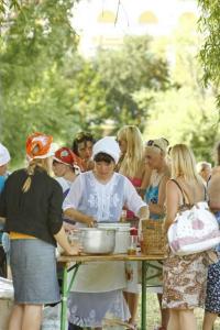 Цього вікенда чернігівців пригощали наваристою шурпою. Що цікаво: цього разу готували, мабуть, найбільшу кількість порцій супу – аж у чотирьох величезних казанах. Як говорять організатори: розраховують запросити до столу близько двох тисяч містян – саме на стільки порцій у них вже припасені продукти.