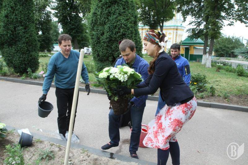 Напередодні великого свята Сергій Березенко висадив кущі гортензії на алеї Свято-Троїцького кафедрального собору.