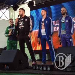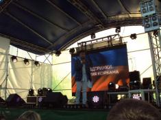 После этого был дан старт концертной программе. Жители нашего зеленого исторического города смогли не только услышать искрометные шутки, репризы, песни и стихи на актуальные темы, но и посмотреть эксклюзивные видеоклипы, которые до Чернигова больше не транслировались ни в одном городе Украины.