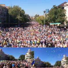 Патриотические украинские песни запели солисты ВМЦ, в том числе и член судейского совета фестиваля «Червона рута», заслуженная артистка Украины – Марина Гончаренко. Среди других произведений она запела и гимн фестиваля, знаменитую одноименную песню Владимира Ивасюка. Следует отметить, что 13 сентября исполнилась 45-я годовщина первого исполнения этой песни.
