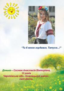 «Жінки та маленькі діти смт. Десна, що у Чернігівській області, пережили страшний і трагічний вересень 2014-го року. Дехто так і не дочекався своїх батьків-військовослужбовців із зони АТО, а двоє малюків народилися вже після загибелі тата. Таким дітям та їхнім матерям якнайперше необхідна допомога!», - розповіла куратор проекту Надія Гордієнко.