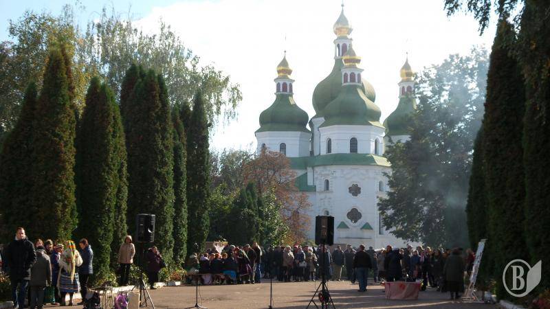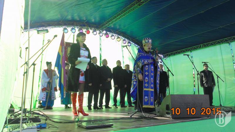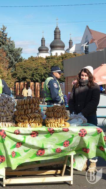 Надивившись на різноманітні товари, ніжинці зібрались на центральній площі на урочистому відкритті Покровського ярмарку. Благословив містян настоятель Покровської церкви отець Михаїл. Священнослужитель окропив усіх свяченою водою та привітав зі святом.