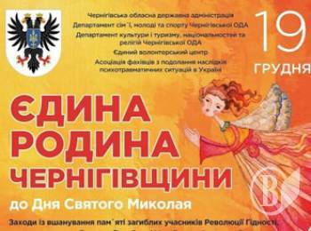 В День Святого Миколая в рамках акції "Єдина родина Чернігівщини" у Чернігові відбудуться заходи із вшанування пам’яті загиблих учасників Революції Гідності, антитерористичної операції на сході України та підтримки їх родин.