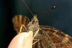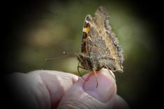 Невероятная красота и все это рядом с нами, под ногами, только нужно наклониться, поклониться, и вы увидите эти творения природы. А тут и бабочка пожаловала к нашему столу, по-видимому, соскучилась по нас, потому что села жене на руку и позволила себя фотографировать в разных позах, красуясь перед нами.