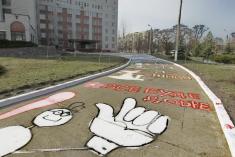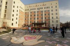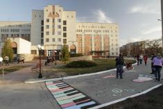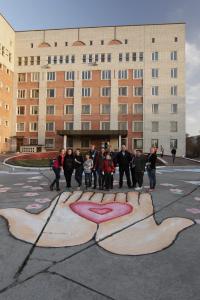 В конечном итоге все желающие собрались перед главным корпусом областного онкодиспансера, развели краски, разобрали щетки, рисунки и пока не село солнышко рисовали и рисовали, все кто хотел.