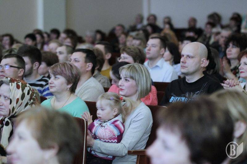 Концертна зала була вщент заповнена. Зранку по місту їздило авто та закликало чернігівців завітати на концерт. Скажу зразу – концерт вдався на славу. Адже в ньому був задіяний весь творчий колектив артистів.