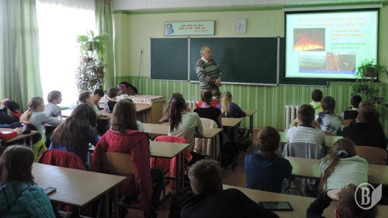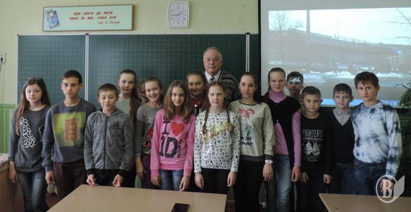 Школьники специализированной школы 1-3 степеней №2 с углубленным изучением иностранных языков встретились 21 апреля с участником ликвидации аварии на ЧАЭС – ветераном пожарной охраны, полковником в отставке В. П. Добрицей.
