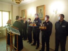 Осужденных Домницкого исправительного центра (№ 135) на Пасху посетили священнослужителе Домницкого мужского монастыря, провели богослужение и освящение пасх, которые осужденные мужчины выпекли в пекарне учреждения.