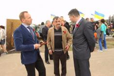 «Сьогодні в Україні відзначається День пам’яті та примирення і все людство поминає жертв Другої світової війни. На жаль, історія має здатність повторюватися і на українській земля знову йде війна, і нащадки переможців у Другій світовій, як і їхні героїчні діди й прадіди, стають на захист своєї Батьківщини. І сьогодні ми поминаємо та вшановуємо всіх загиблих за незалежність і територіальну цілісність України», – цими словами було розпочато меморіальних захід.