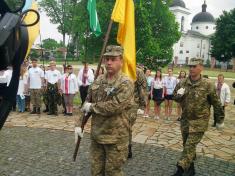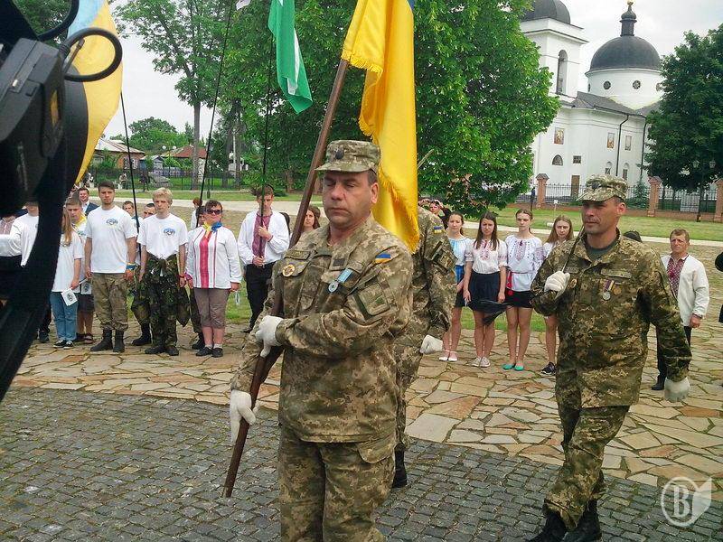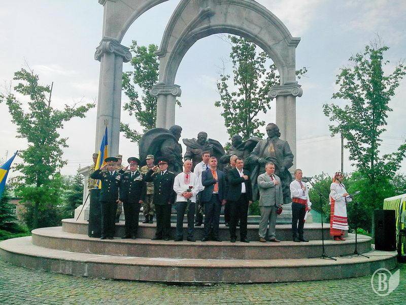 Біля скульптурної композиції "Гетьмани. Молитва за Україну" учасників акції – представників громадських організацій "Жіноча волонтерська сотня" та рятувальна служба "SOS", бійців АТО, патріотичну молодь з 12 областей – привітали голова облдержадміністрації Валерій Куліч, заступник міністра молоді та спорту Олександр Ярема, Герой України, ветеран бойових дій на Сході Євген Межевікін, народний депутат Валерій Давиденко та інші.