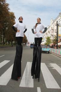 Адже дівчатка так упевнено трималися на ходулях, як деякі дівчата справляються з кілька сантиметровими каблуками. Їх можна було бачити і на Алеї героїв і на центральній площі.