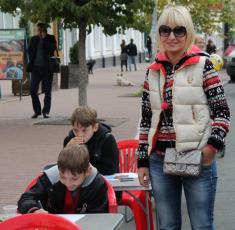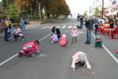 Малеча і дорослі, навіть бабусі, показували свою вправність і таланти на конкурсі малюнка, як на папері, так і на асфальті. Правда, бабусям набагато важче було нагинатися малювати на асфальті.