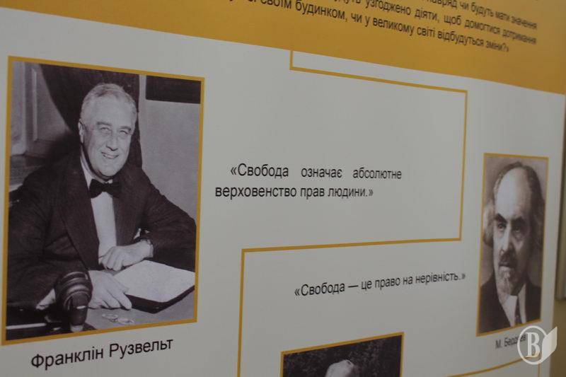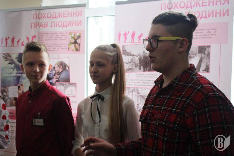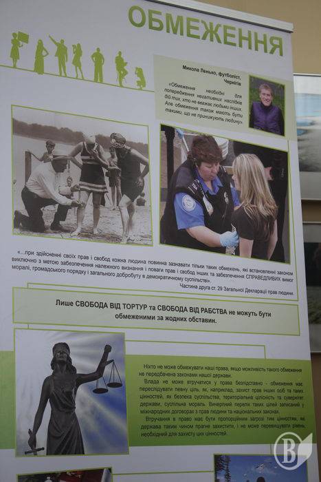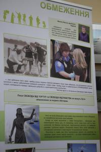 Экспозиция представляет стенды на темы: «Эволюция прав человека», «Ограничения», «Свобода и личная неприкосновенность», «Права человека и обязанности», и тому подобное. О каждом из тематических блоков будут рассказывать школьники.