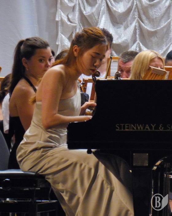 У другому відділенні його учениця Хайн Грейс Кім виконала 2-й концерт для фортепіано з оркестром сі-бемоль мажор Й. Брамса. Справжня учениця свого учителя: дивовижна відшліфованість кожного звуку, легкі, майже невагомі дотики до клавіш, на які інструмент відгукується ніжним, інтелігентним звучанням.