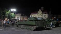 Військова техніка, що сьогодні виставлена на Красній площі, прибуле вчора у відносній прохолоді пізнього вечора.