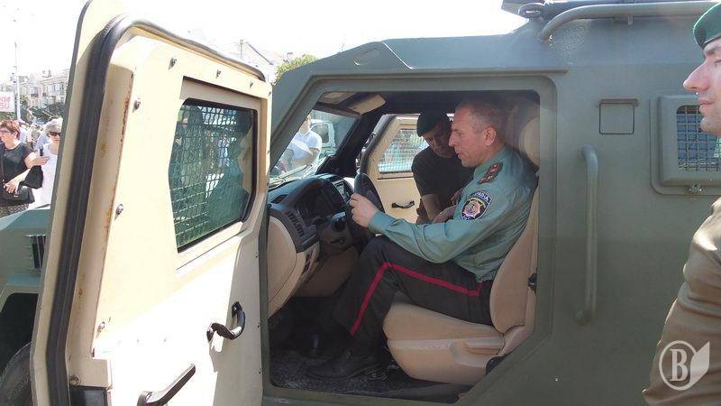 10.45 – огляд виставки зразків озброєння та військової техніки Збройних Сил України, Національної поліції України, Державної прикордонної служби України, Державної служби України з надзвичайних ситуацій, Національної гвардії України, Державної спеціальної служби транспорту (Красна площа)