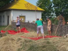 Ось і Матіївка. За нею, під лісом, Обирок. Ідемо на реєстрацію. Далі нас запрошують долучитися до жнив. Розпочинається передостанній день. На полі вже чимало людей. Організатори просять всіх, хто не жне, відійти на кілька кроків, аби дати місце учасникам дійства.