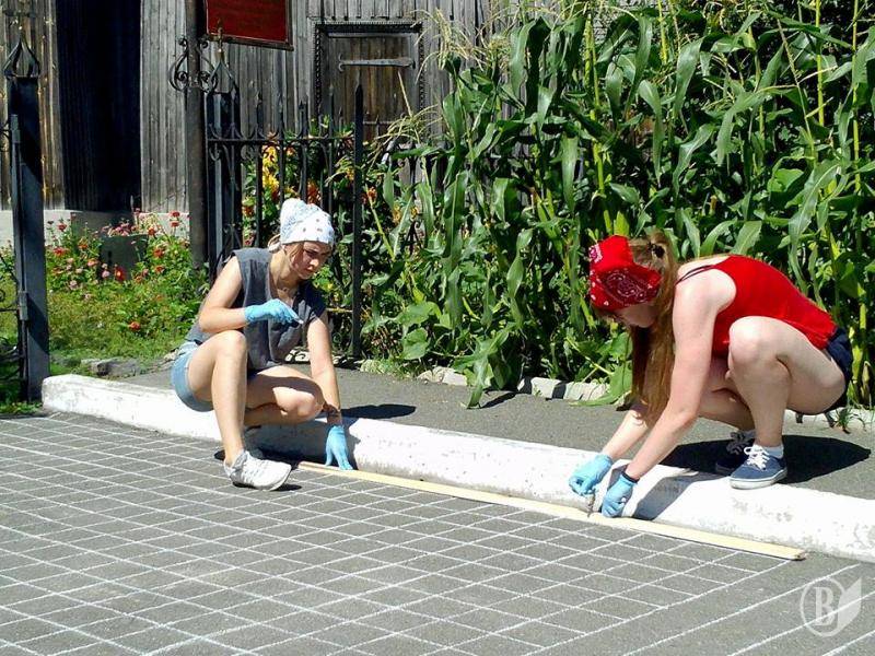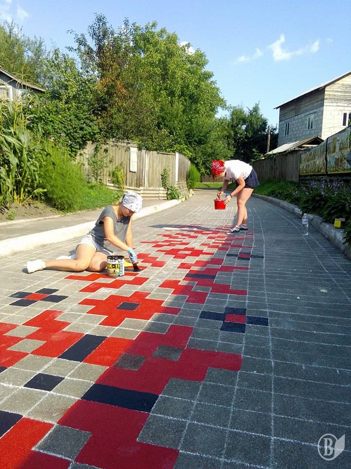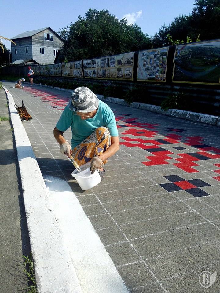 Робота розпочалась, коли студентки Наталія Синиця та Світлана Курданова виявили бажання попрацювати над малюнком на асфальті. Заступник голови Чернігівської районної ради Володимир Поліщук теж підтримав ідею та допоміг у придбані спеціальної фарби. Однак, поряд з малюнком на асфальті необхідно було вирішити та інші питання – виготовлення банеру про вишивку Зінаїди Лук’яненко, придбання паркану (тину), обмежувача руху для машин тощо.