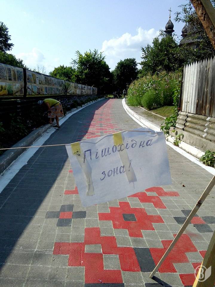 Ще раніше ми з настоятелем церкви обговорювали пропозицію щодо створення на вуличці визирунків українського рушника. Вирішили, що це повинно статися до Дня незалежності України та ще присвятити її створення до ювілеїв українських діячів Іллі Шрага (до 170-річчя відомого земляка краєзнавець Ярослав Волерт виготовив сувенірну листівку) та Левка Лук’яненка.