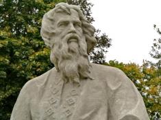 Аби скульптура не була на фото сусідом туалету й не стояла на його тлі, слід звернути увагу на таку особливість розташування і цілеспрямовано обійти Лірника з іншого боку.