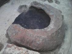 «Під час реконструкції місцеві археологи знайшли глинобитну піч часів Київської Русі. Після того, як піч дослідили, вона була знову закопана», – коментує він фото.