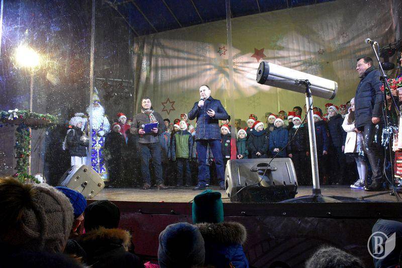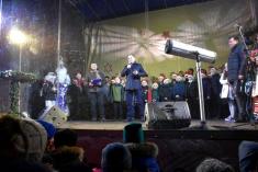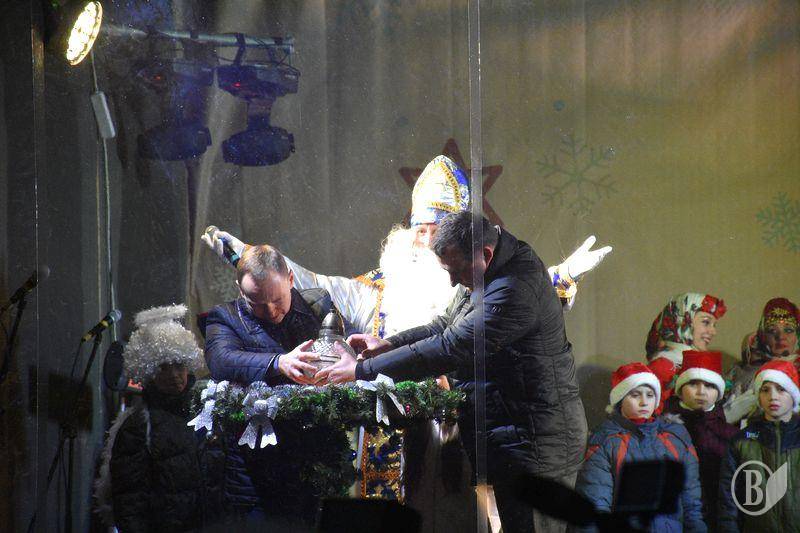 Після привітань керівники міста й області разом із Святим Миколаєм запалили вогні на Головній ялинці міста.