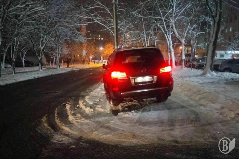 Особливого забарвлення грудневому вечору надають діодні вогні габаритів великого й дорогого «Lexus», а щоб ви їх напевно помітили й помилувалися, він загородив тротуар в центрі міста.