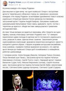 Надзвичайно приємно було побачити у вельми шанованому столичному виданні – щоденній всеукраїнській газеті «День» від 04 січня – статтю «Новий рік у Львівській опері розпочався гастролями гостей з Чернігова», яка сповіщала, що «Початок нового, 2018-го, ознаменувався красивою подією – виступом у Львові прекрасного українського театрального колективу зі старовинного Чернігова!», – маючи на увазі комедію Чернігівського обласного музично-драматичного театру імені Тараса Шевченка «Ніч перед Різдвом» за мотивами Миколи Гоголя (режисер Андрій Бакіров), що відбулася 3 січня…