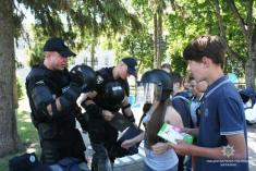 Юні чернігівці фотографувалися із спецпризначенцями, приміряли поліцейські обладунки, досліджували патрульний автомобіль та навчалися поводженню із вибухонебезпечними предметами.