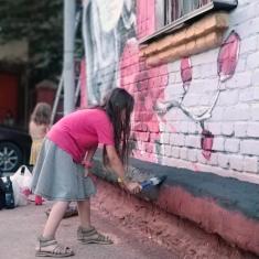 25.09.2017 Жінка уже вишиває на стіні по Ремісничій у Чернігові - мурал