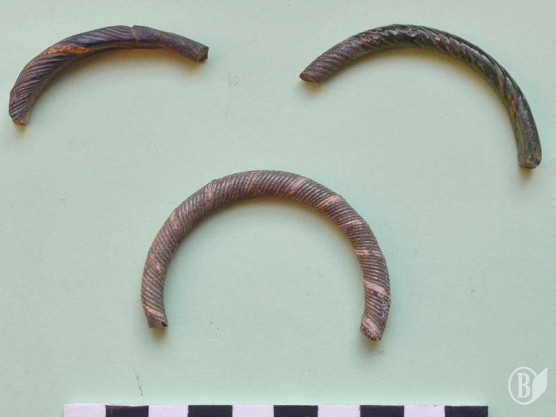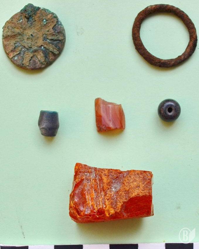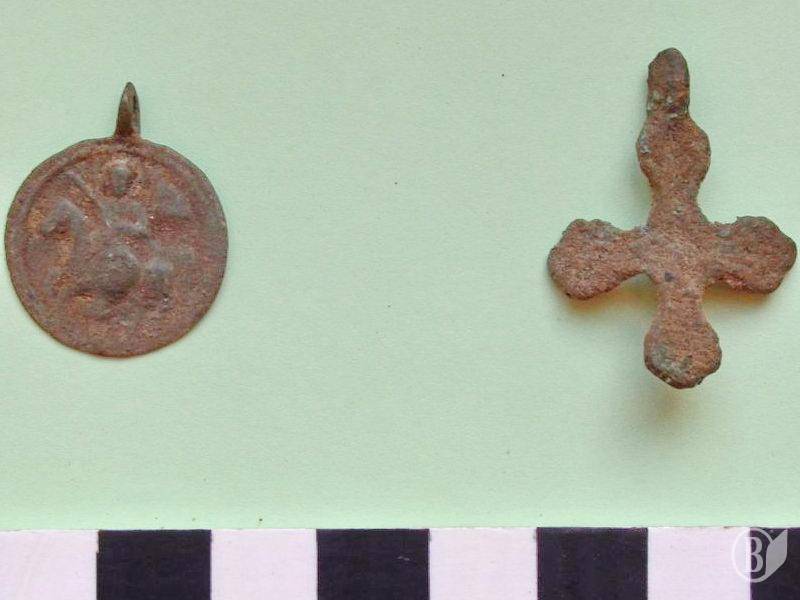 Найбільш цікаві знахідки (підвіска із зображенням святого воїна, хрестик, металеві та скляні каблучки тощо) походять зі згорілих споруд кінця ХІІ - початку ХІІІ ст.